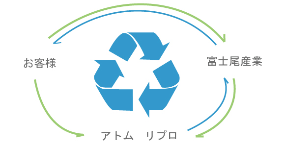また、印刷段階で出る不要プラスチックフィルムや、お客様の余剰フィルムをリサイクルできないかと思い、プラスチック特殊再生加工をする「リプロ」、プラスチック再生加工および製造をする「アトム」というグループ企業が生まれました。